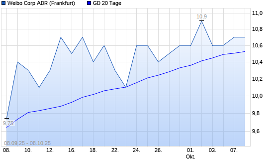 Mit dem Rücksetzer auf 10,60 EUR hat die Weibo Corporation ADR-Aktie am 07.10.2025 die 20-Tage-Linie nach unten gekreuzt.