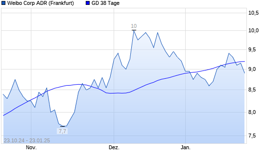Mit dem Rücksetzer auf 9,05 EUR hat die Weibo Corporation ADR-Aktie am 22.01.2025 die 38-Tage-Linie nach unten gekreuzt.