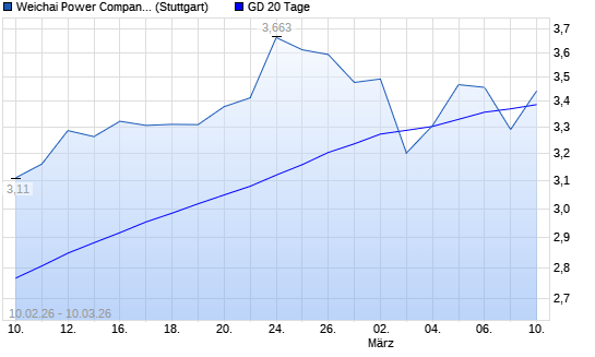 Mit dem Rücksetzer auf 3,27 EUR hat die Weichai Power-Aktie am 09.03.2026 die 20-Tage-Linie nach unten gekreuzt.