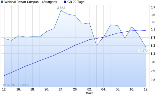 Mit dem Rücksetzer auf 3,35 EUR hat die Weichai Power-Aktie am 11.03.2026 die 20-Tage-Linie nach unten gekreuzt.