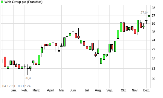 Mit dem Anstieg auf 26,86 EUR hat die Weir Group-Aktie (ISIN GB0009465807) am 02.12.2024 ein neues 5-Jahres-Hoch erreicht und damit den Kurs vom 08.11.2024 eingestellt.