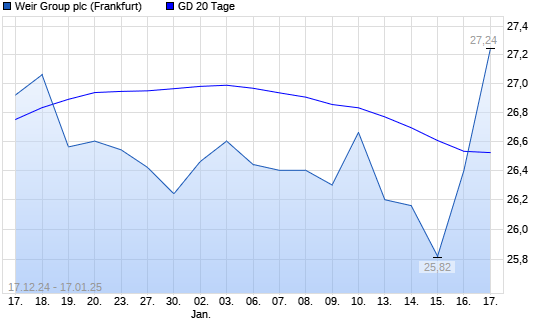 Mit dem Anstieg auf 26,40 EUR hat die Weir Group-Aktie am 16.01.2025 die 20-Tage-Linie nach oben gekreuzt.