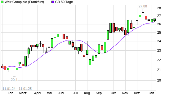 Mit dem Anstieg auf 26,66 EUR hat die Weir Group-Aktie am 10.01.2025 die 50-Tage-Linie nach oben gekreuzt.