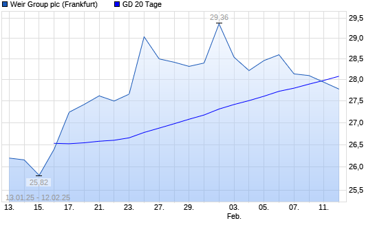 Mit dem Rücksetzer auf 27,94 EUR hat die Weir Group-Aktie am 11.02.2025 die 20-Tage-Linie nach unten gekreuzt.