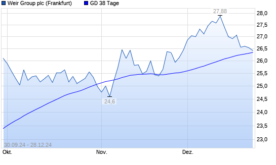 Mit dem Rücksetzer auf 26,42 EUR hat die Weir Group-Aktie am 27.12.2024 die 38-Tage-Linie nach unten gekreuzt.
