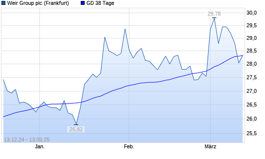 Mit dem Rücksetzer auf 28,04 EUR hat die Weir Group-Aktie am 12.03.2025 die 38-Tage-Linie nach unten gekreuzt.