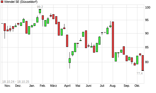 Mit dem Rücksetzer auf 78,00 EUR hat die Wendel Investissement-Aktie (ISIN FR0000121204) am 17.10.2025 ein neues 12-Monats-Tief erreicht und damit den Kurs vom 09.04.2025 eingestellt.