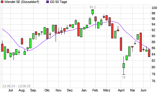 Mit dem Rücksetzer auf 85,00 EUR hat die Wendel Investissement-Aktie am 12.06.2025 die 50-Tage-Linie nach unten gekreuzt.
