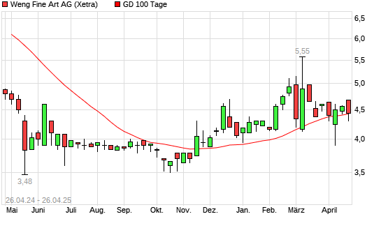 Mit dem Anstieg auf 4,34 EUR hat die Weng Fine Art-Aktie am 25.04.2025 die 100-Tage-Linie nach oben gekreuzt.