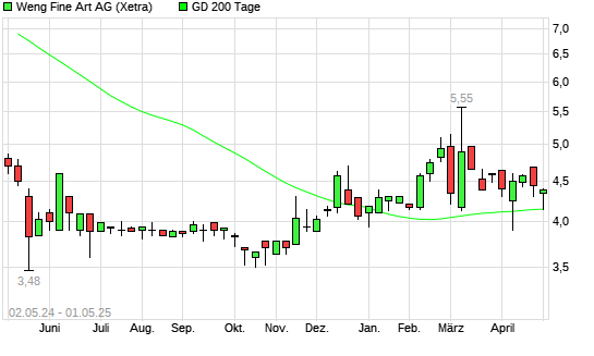 Mit dem Anstieg auf 4,12 EUR hat die Weng Fine Art-Aktie am 30.04.2025 die 200-Tage-Linie nach oben gekreuzt.