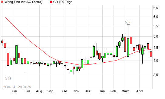 Mit dem Rücksetzer auf 4,34 EUR hat die Weng Fine Art-Aktie am 28.04.2025 die 100-Tage-Linie nach unten gekreuzt.