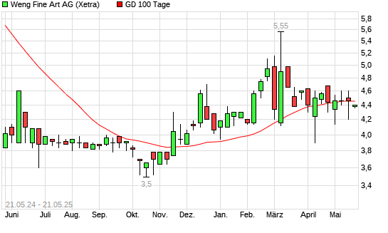 Mit dem Rücksetzer auf 4,30 EUR hat die Weng Fine Art-Aktie am 20.05.2025 die 100-Tage-Linie nach unten gekreuzt.