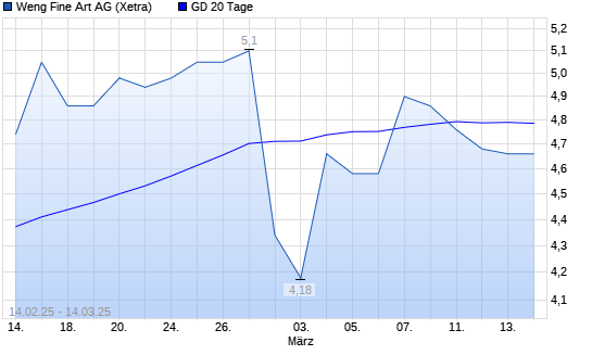 Mit dem Rücksetzer auf 4,52 EUR hat die Weng Fine Art-Aktie am 13.03.2025 die 20-Tage-Linie nach unten gekreuzt.