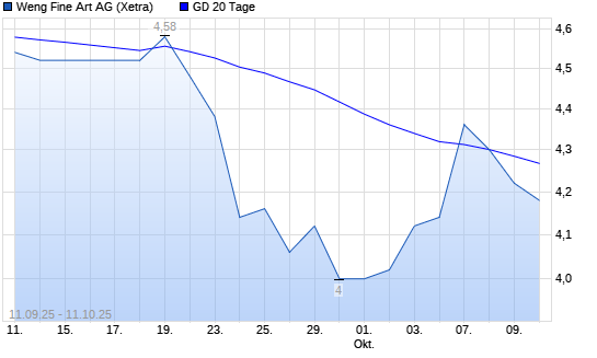 Mit dem Rücksetzer auf 4,04 EUR hat die Weng Fine Art-Aktie am 10.10.2025 die 20-Tage-Linie nach unten gekreuzt.