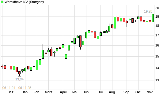 Mit dem Anstieg auf 19,20 EUR hat die Wereldhave-Aktie (ISIN NL0000289213) am 05.11.2025 ein neues 5-Jahres-Hoch erreicht und damit den Kurs vom 04.09.2025 eingestellt.