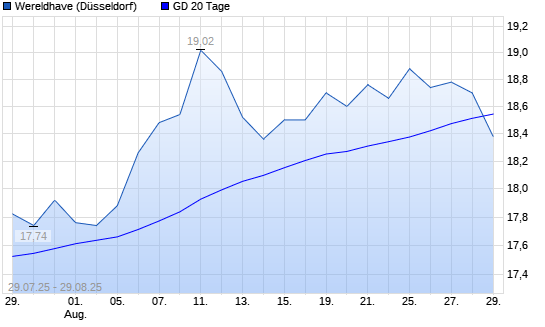 Mit dem Rücksetzer auf 18,32 EUR hat die Wereldhave-Aktie am 28.08.2025 die 20-Tage-Linie nach unten gekreuzt.