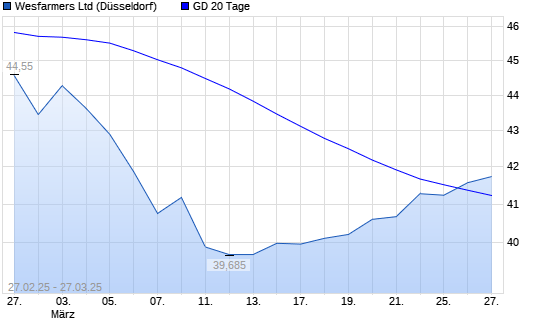 Mit dem Anstieg auf 42,10 EUR hat die Wesfarmers-Aktie am 26.03.2025 die 20-Tage-Linie nach oben gekreuzt.