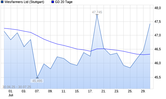 Mit dem Anstieg auf 46,71 EUR hat die Wesfarmers-Aktie am 29.07.2025 die 20-Tage-Linie nach oben gekreuzt.