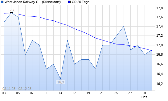 Mit dem Rücksetzer auf 16,90 EUR hat die West Japan Railway-Aktie am 01.12.2025 die 20-Tage-Linie nach unten gekreuzt.