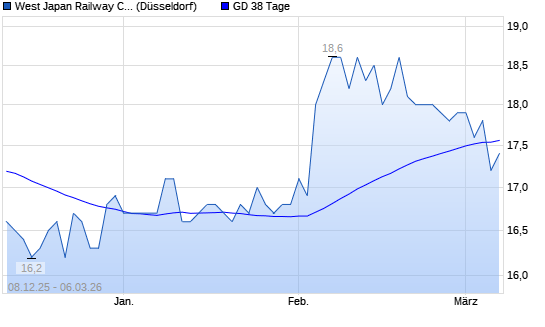 Mit dem Anstieg auf 17,70 EUR hat die West Japan Railway-Aktie am 05.03.2026 die 38-Tage-Linie nach oben gekreuzt.Die West Japan Railway-Aktie befindet sich seit dem 20.02.2026 ...weiterlesen