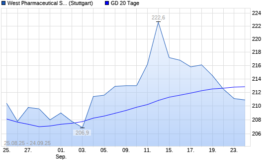 Mit dem Rücksetzer auf 212,10 EUR hat die West Pharmaceutical Services-Aktie am 23.09.2025 die 20-Tage-Linie nach unten gekreuzt.