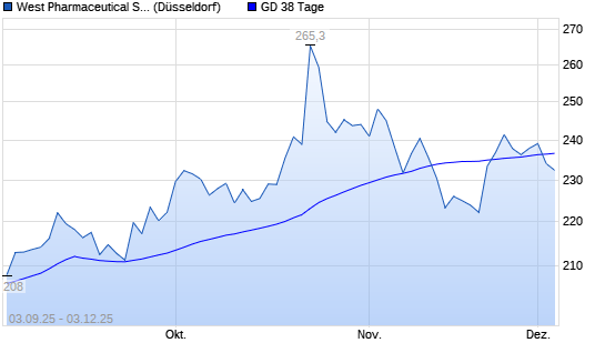 Mit dem Rücksetzer auf 234,20 EUR hat die West Pharmaceutical Services-Aktie am 02.12.2025 die 38-Tage-Linie nach unten gekreuzt.