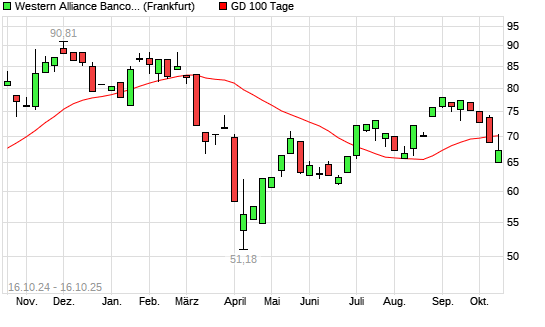 Mit dem Anstieg auf 70,40 EUR hat die Western Alliance-Aktie am 15.10.2025 die 100-Tage-Linie nach oben gekreuzt.