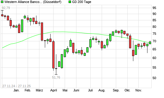 Mit dem Anstieg auf 69,72 EUR hat die Western Alliance-Aktie am 26.11.2025 die 200-Tage-Linie nach oben gekreuzt.