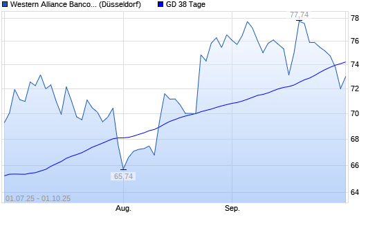 Mit dem Rücksetzer auf 73,76 EUR hat die Western Alliance-Aktie am 30.09.2025 die 38-Tage-Linie nach unten gekreuzt.