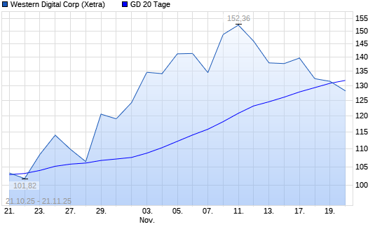 Mit dem Rücksetzer auf 125,00 EUR hat die Western Digital-Aktie am 20.11.2025 die 20-Tage-Linie nach unten gekreuzt.