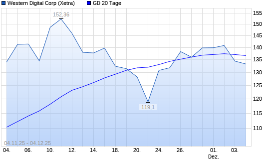 Mit dem Rücksetzer auf 133,40 EUR hat die Western Digital-Aktie am 03.12.2025 die 20-Tage-Linie nach unten gekreuzt.