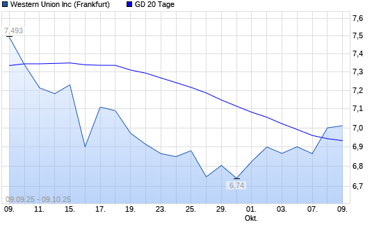Mit dem Anstieg auf 7,00 EUR hat die Western Union-Aktie am 08.10.2025 die 20-Tage-Linie nach oben gekreuzt.