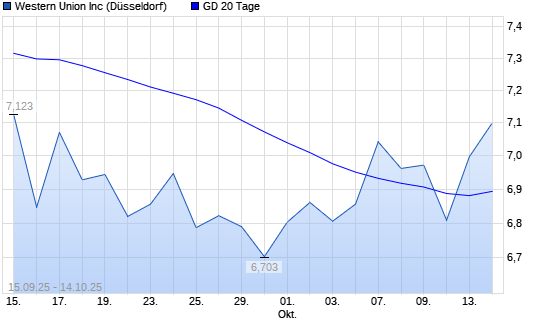 Mit dem Anstieg auf 6,91 EUR hat die Western Union-Aktie am 13.10.2025 die 20-Tage-Linie nach oben gekreuzt.