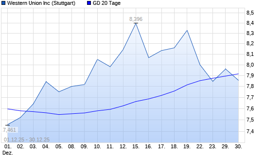 Mit dem Anstieg auf 7,95 EUR hat die Western Union-Aktie am 29.12.2025 die 20-Tage-Linie nach oben gekreuzt.