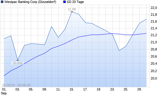 Mit dem Anstieg auf 21,62 EUR hat die Westpac Banking-Aktie am 29.09.2025 die 20-Tage-Linie nach oben gekreuzt.