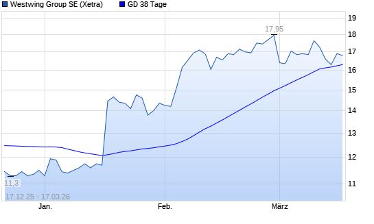 Mit dem Anstieg auf 16,20 EUR hat die Westwing Group-Aktie am 16.03.2026 die 38-Tage-Linie nach oben gekreuzt.