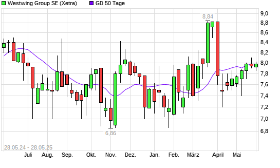 Mit dem Anstieg auf 7,86 EUR hat die Westwing Group-Aktie am 27.05.2025 die 50-Tage-Linie nach oben gekreuzt.