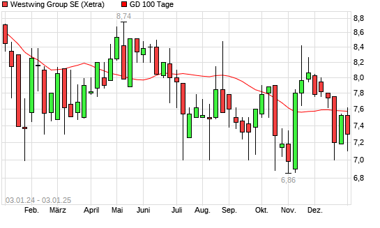 Mit dem Rücksetzer auf 7,34 EUR hat die Westwing Group-Aktie am 02.01.2025 die 100-Tage-Linie nach unten gekreuzt.