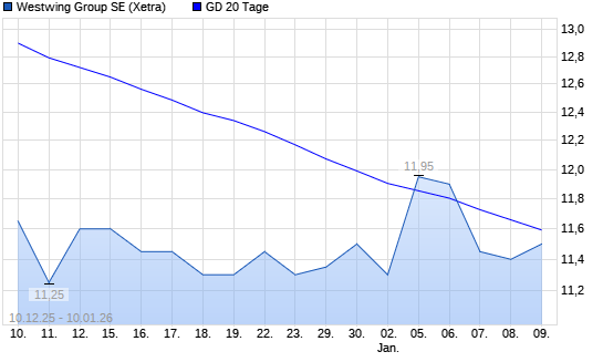 Mit dem Rücksetzer auf 11,40 EUR hat die Westwing Group-Aktie am 09.01.2026 die 20-Tage-Linie nach unten gekreuzt.
