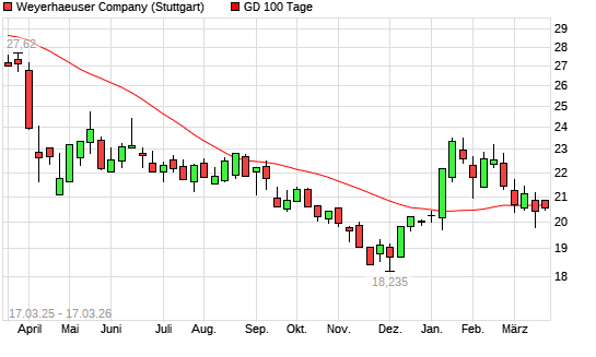 Mit dem Anstieg auf 20,69 EUR hat die Weyerhaeuser Company-Aktie am 16.03.2026 die 100-Tage-Linie nach oben gekreuzt.
