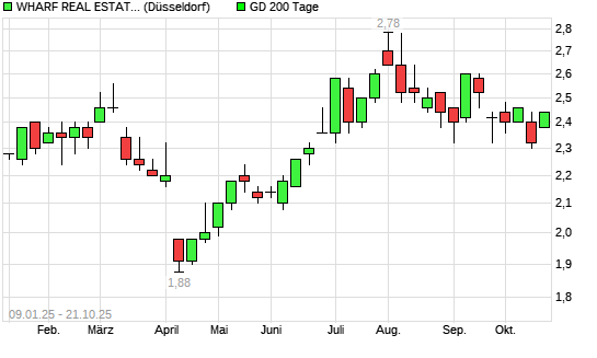 Mit dem Anstieg auf 2,36 EUR hat die Wharf Real Estate Investment Company-Aktie am 20.10.2025 die 200-Tage-Linie nach oben gekreuzt.