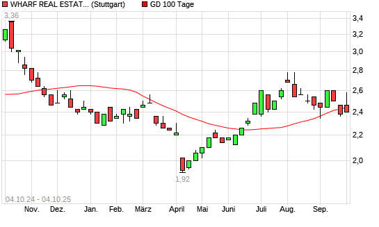 Mit dem Rücksetzer auf 2,36 EUR hat die Wharf Real Estate Investment Company-Aktie am 03.10.2025 die 100-Tage-Linie nach unten gekreuzt.