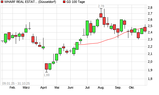 Mit dem Rücksetzer auf 2,40 EUR hat die Wharf Real Estate Investment Company-Aktie am 30.10.2025 die 100-Tage-Linie nach unten gekreuzt.