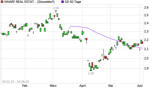 Mit dem Anstieg auf 2,14 EUR hat die Wharf Real Estate Investment Company-Aktie am 03.06.2025 die 50-Tage-Linie nach oben gekreuzt.Die Wharf Real Estate Investment Company-Aktie befindet sich ...weiterlesen