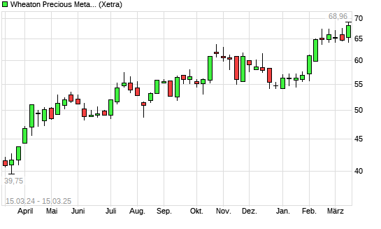 Mit dem Anstieg auf 68,44 EUR hat die Wheaton Precious Metals-Aktie (ISIN CA9628791027) am 14.03.2025 ein neues All-Time-High erreicht und damit den Kurs vom 13.03.2025 eingestellt.