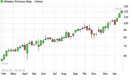Mit dem Anstieg auf 119,10 EUR hat die Wheaton Precious Metals-Aktie (ISIN CA9628791027) am 19.01.2026 ein neues All-Time-High erreicht und damit den Kurs vom 16.01.2026 eingestellt.