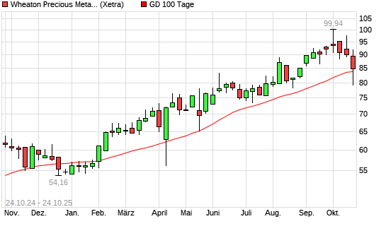 Mit dem Anstieg auf 85,42 EUR hat die Wheaton Precious Metals-Aktie am 23.10.2025 die 100-Tage-Linie nach oben gekreuzt.