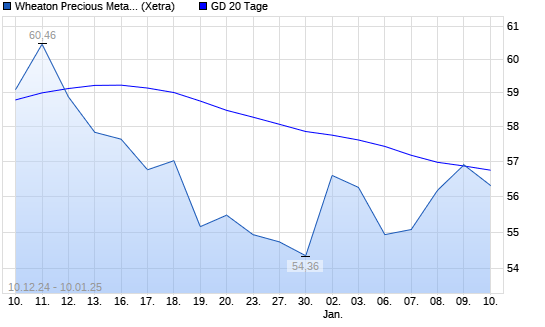 Mit dem Anstieg auf 56,66 EUR hat die Wheaton Precious Metals-Aktie am 09.01.2025 die 20-Tage-Linie nach oben gekreuzt.