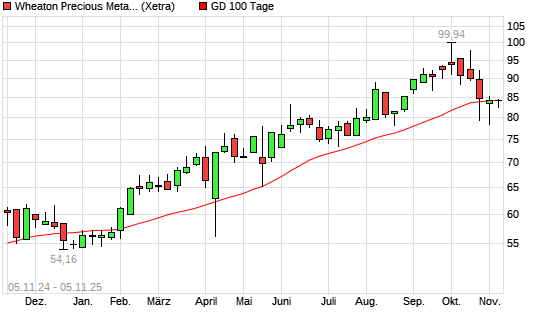Mit dem Rücksetzer auf 82,60 EUR hat die Wheaton Precious Metals-Aktie am 04.11.2025 die 100-Tage-Linie nach unten gekreuzt.
