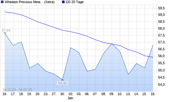 Mit dem Rücksetzer auf 55,00 EUR hat die Wheaton Precious Metals-Aktie am 15.01.2025 die 20-Tage-Linie nach unten gekreuzt.